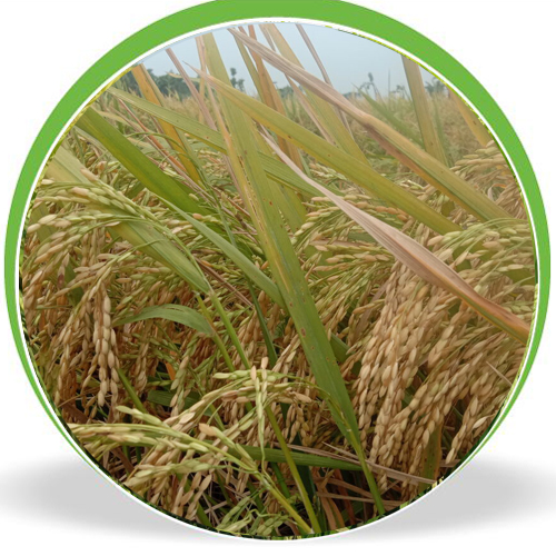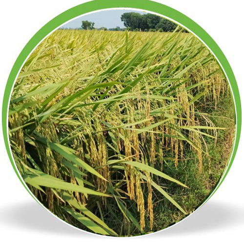 Plant height is 105 cm with long grain.